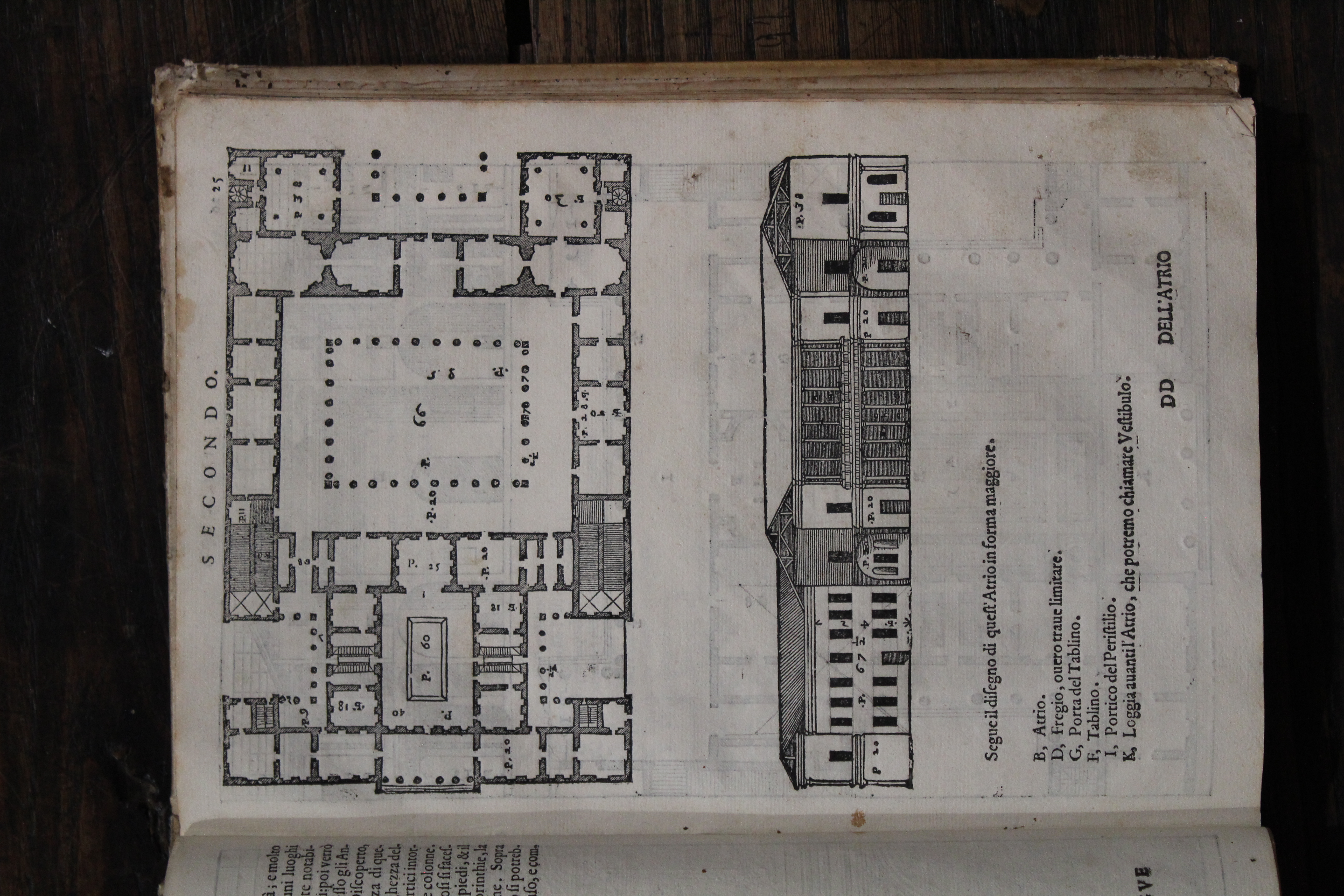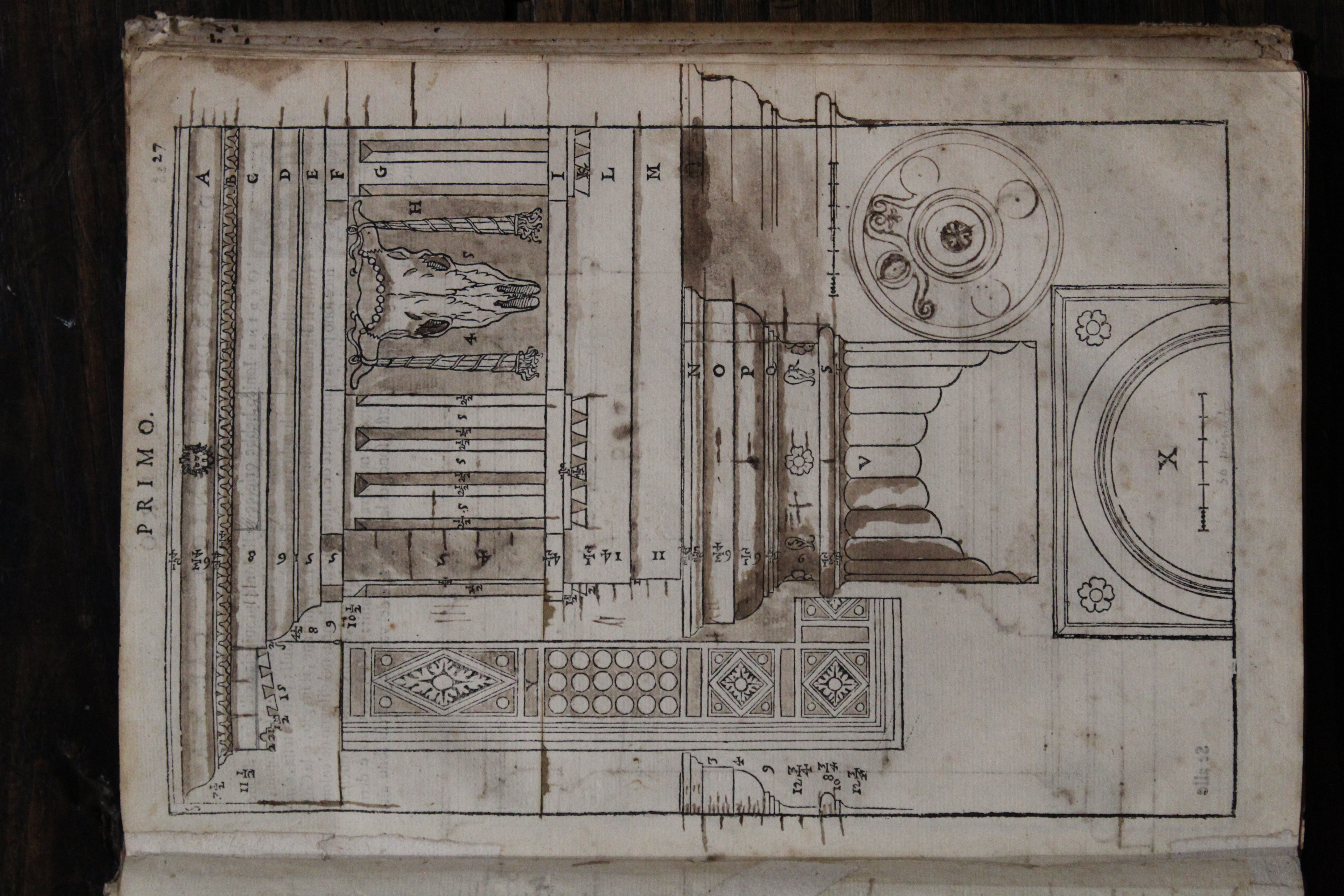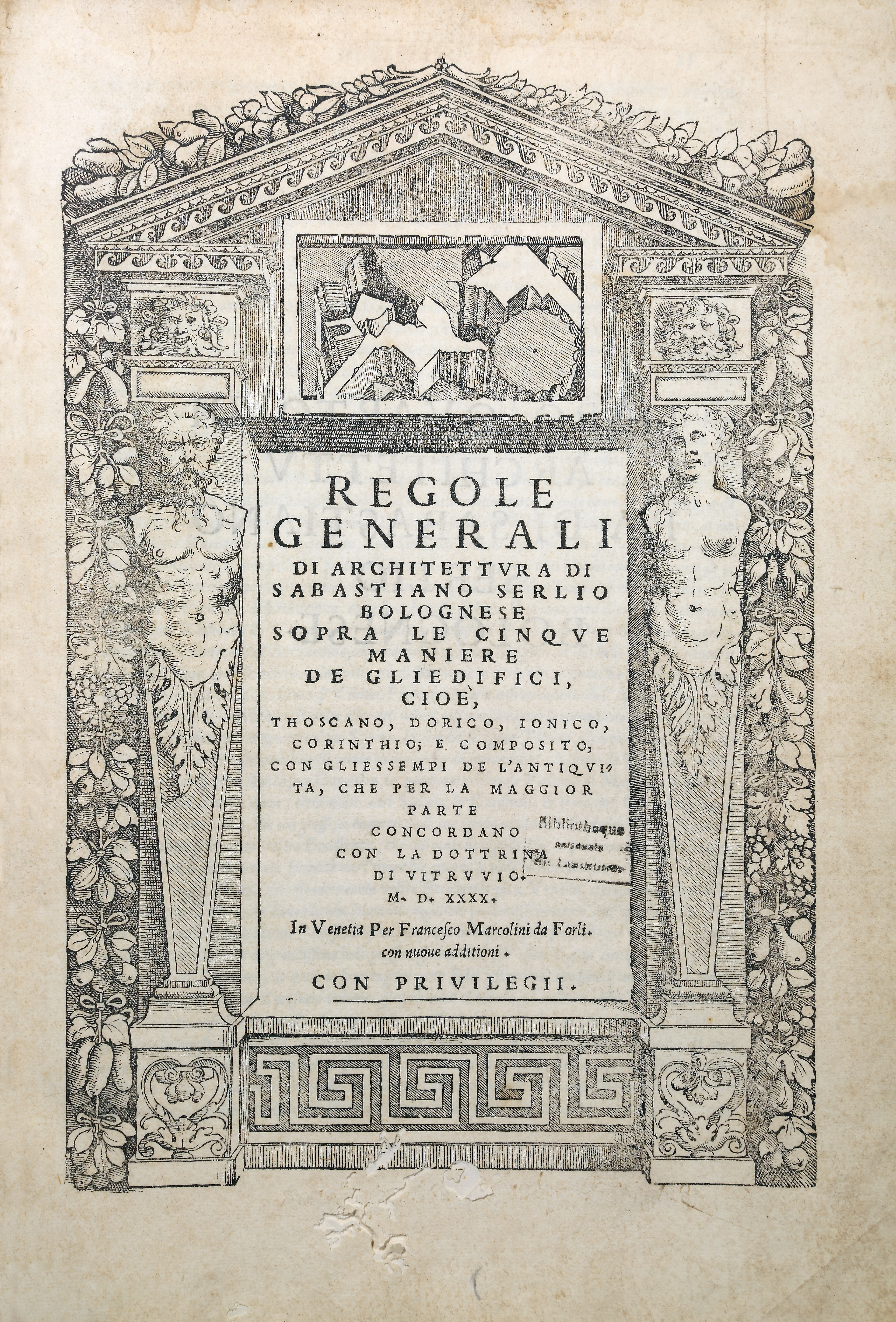 Divided into ten « books », De architectura deals with the general principles of architecture, the types of monuments of antiquity and various technical issues. In the Fesch collection (link to box), we have 3 copies, the oldest dating from 1552 and the most recent from 1684. The "De Architectura" defines very precisely the orders of architecture: Doric, Ionic, Corinthian and Tuscan or Etruscan. In a Europe that reveres ancient models, but knows Roman architecture only in the form of ruins, at least until the discovery of Pompeii, the work will have a considerable diffusion. Its influence on the European architecture of the XVI-XVII-XVIIIth centuries is incomparable. Thus, Claude Perrault, architect of the king, also architect of the colonnade of the Louvre, gave a French edition illustrated in 1673.