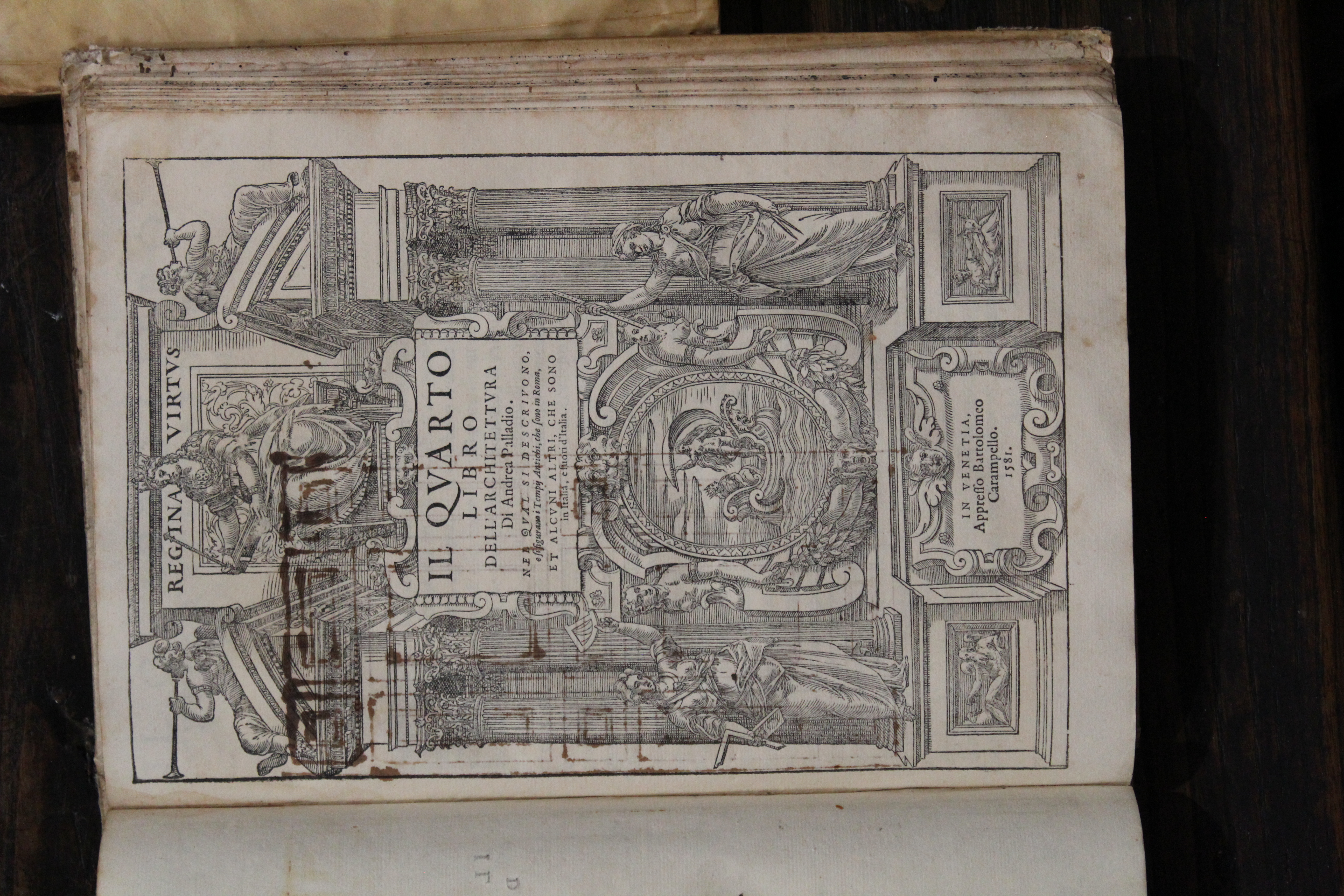 The Fesch library has 2 copies of this book, one from 1581, the other from 1650. Past in posterity for his "Palladian villas" in the Veneto countryside, he built about thirty villas between 1550 and 1580, the most famous of which is the Villa Rotonda. This villa, still admired today, is considered the synthesis, absolute and paradoxical at the same time, of the two major components of the architecture of the Cinquecento: the Vitruvian classicism and the modern mannerism. He also built several churches in Venice, including San Giorgio Maggiore and the Redentore.